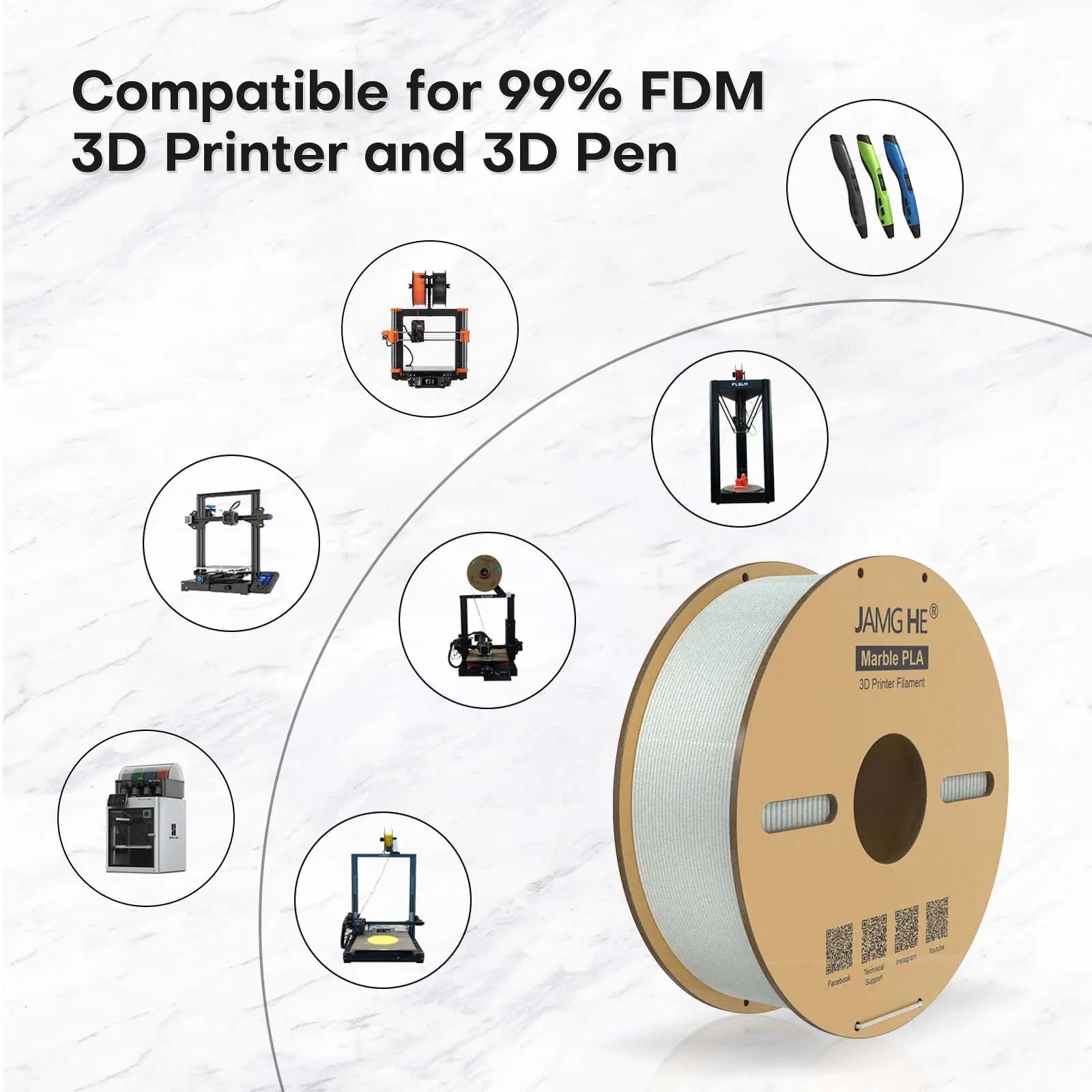 Filament pour imprimante 3D Jamghe PLA+ marbre, 1,75 mm, 1 kg - Spécification