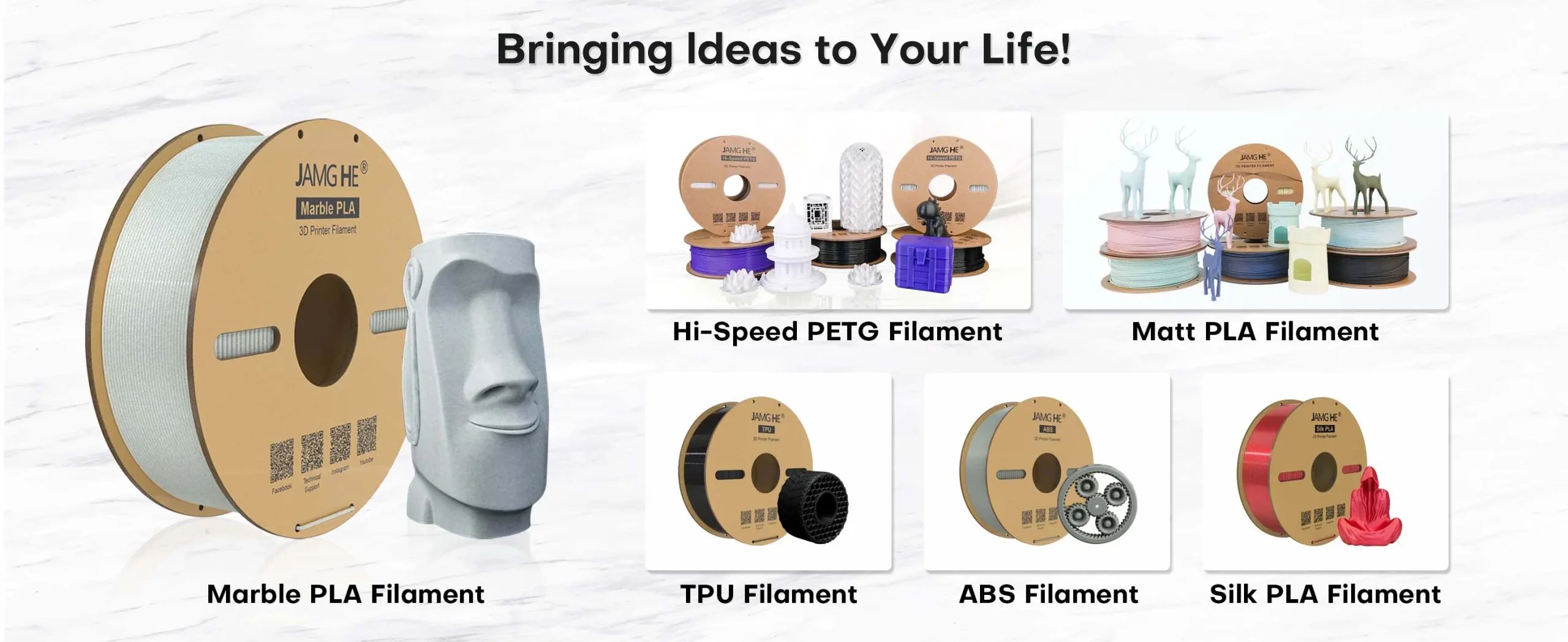 Choisissez le filament Jamghe PLA+ Marble 1 kg pour ajouter une touche d’élégance à vos projets d’impression 3D et allier une esthétique époustouflante à des performances fiables.